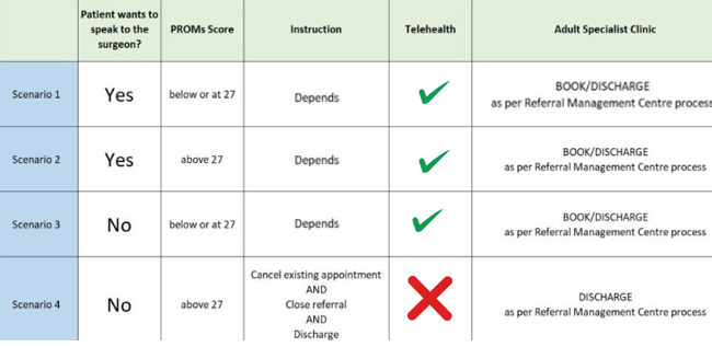 • Registrars will call patients who have scored 27 or below on their PROMS and/or want to speak to a doctor.