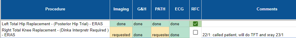 - You will then systematically go through their files and ensure that all their relevant investigations, including bloods, extended group and hold, xrays, ECGs are up to date