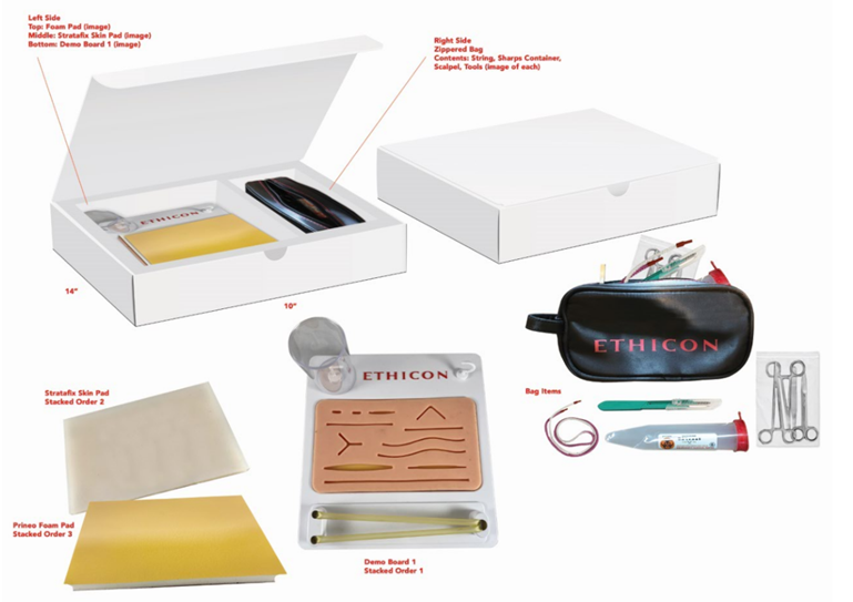 SuturEd Program – this is a training program that focuses on upskilling on suturing techniques. Participants are provided with a toolkit to enhance their basic and advances suturing training. Ethicon would provide a SuturEd toolkit for each participant (see in the image below) along with online learning which is then supplemented by a live workshop (basic suturing followed by advance suturing) facilitated by consultants or senior registrars.